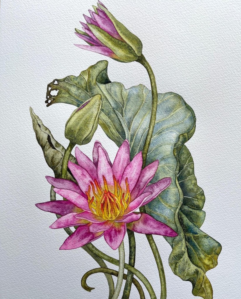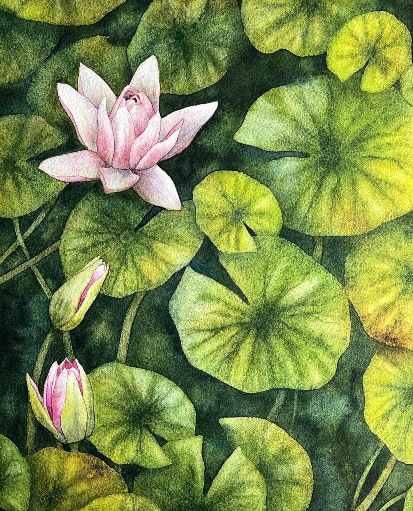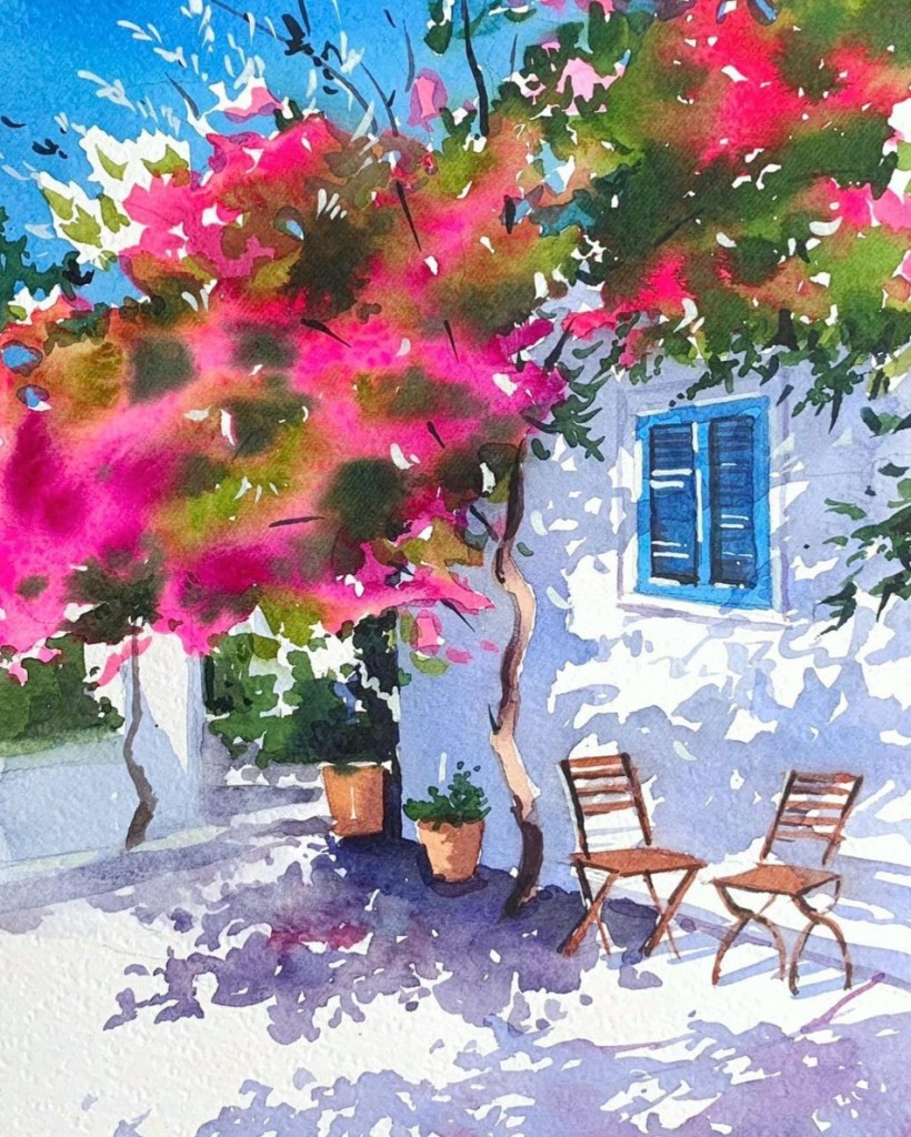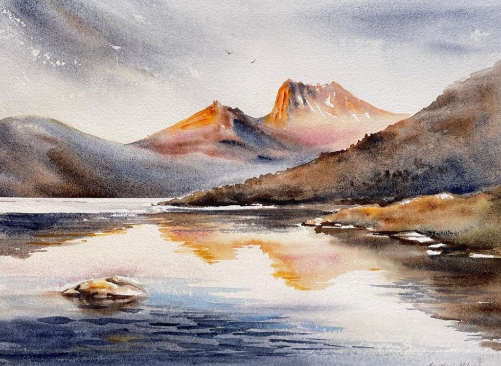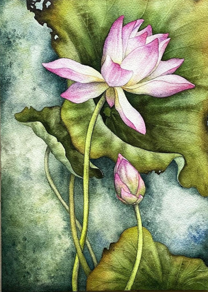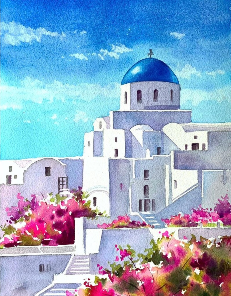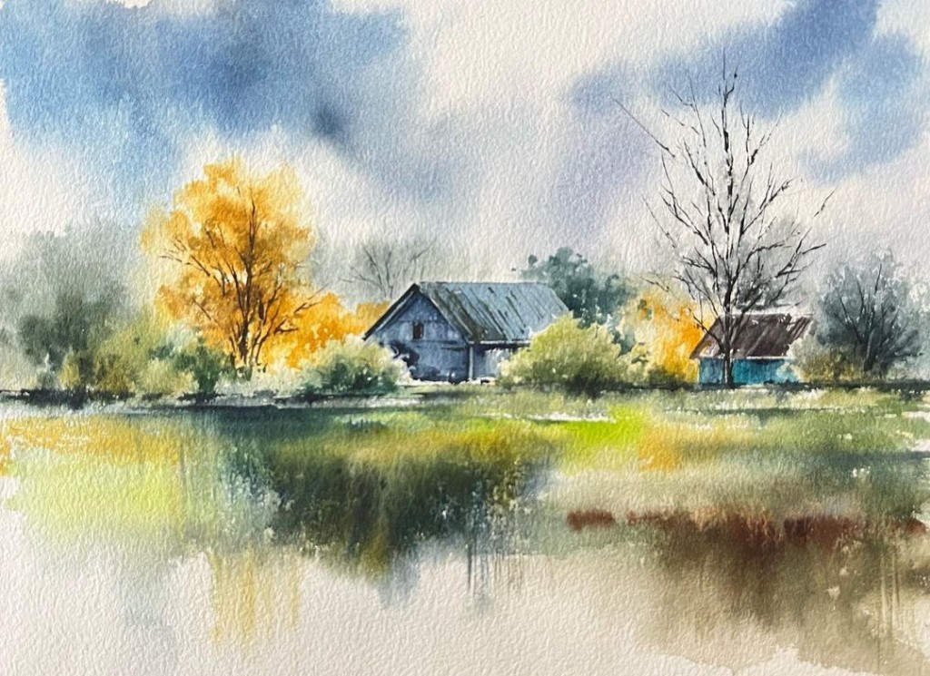 Description: Watercolor painting uses water-soluble pigments to create transparent, fluid artwork.