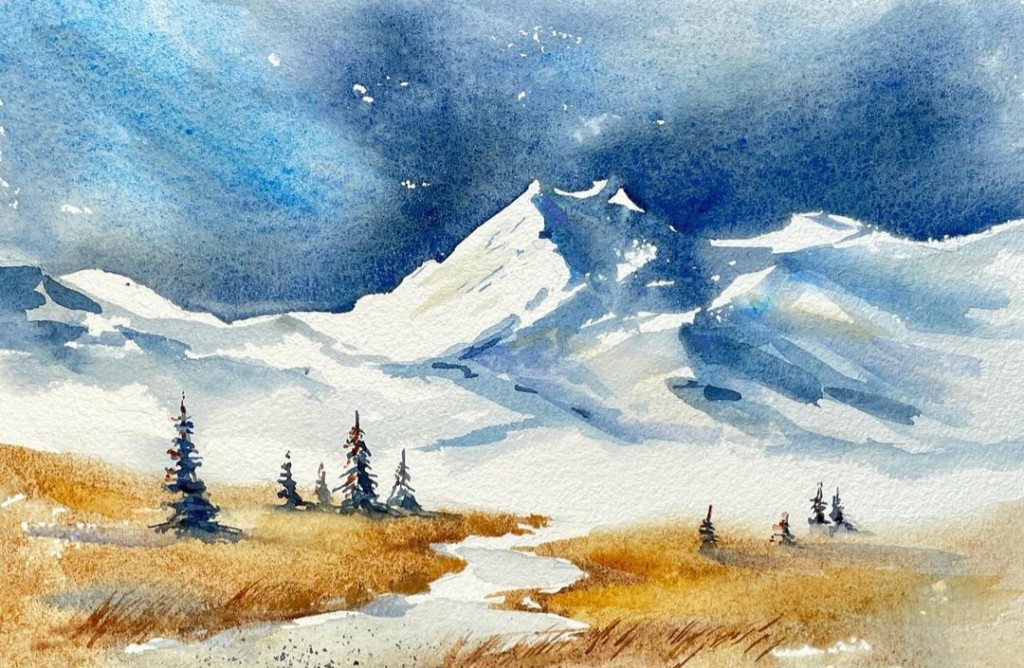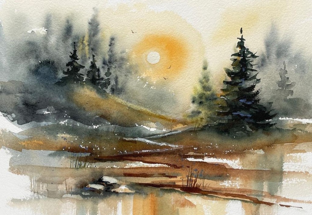 Tips & Variations: Experiment with different brushstrokes, wet-on-wet or dry-on-wet techniques, using salt or masking fluid for texture.